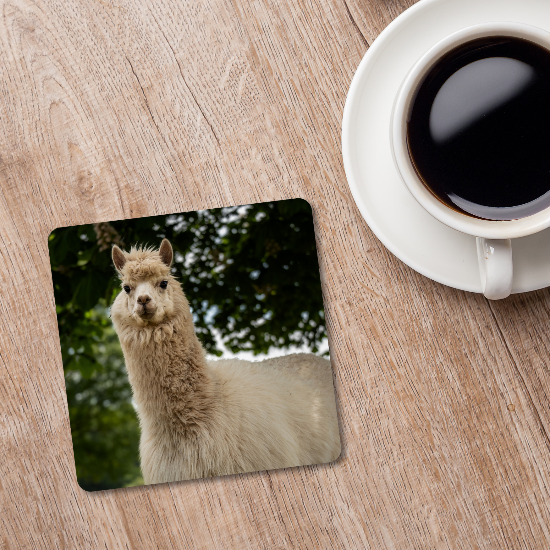 Add a touch of charm to your home with our Benji the alpaca coaster, featuring a stunning photo of our cheeky alpaca Benji.