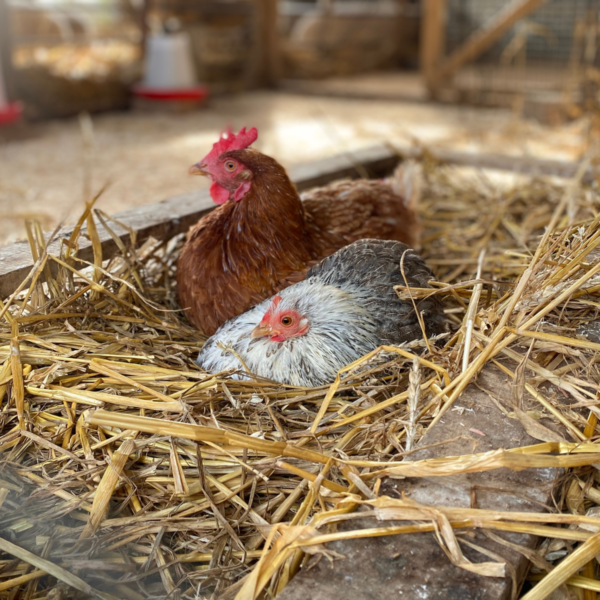 In winter, we use extra straw to keep our animals warm across the sanctuary. Two bales will fill all of the beds in our Pig Barn, lasting for 2-3 weeks, while our Cow Barn needs one bale every other day for fresh bedding. We also line field shelters for our grazing animals and fill the chickens' nest boxes with straw to keep everyone snug and comfortable.