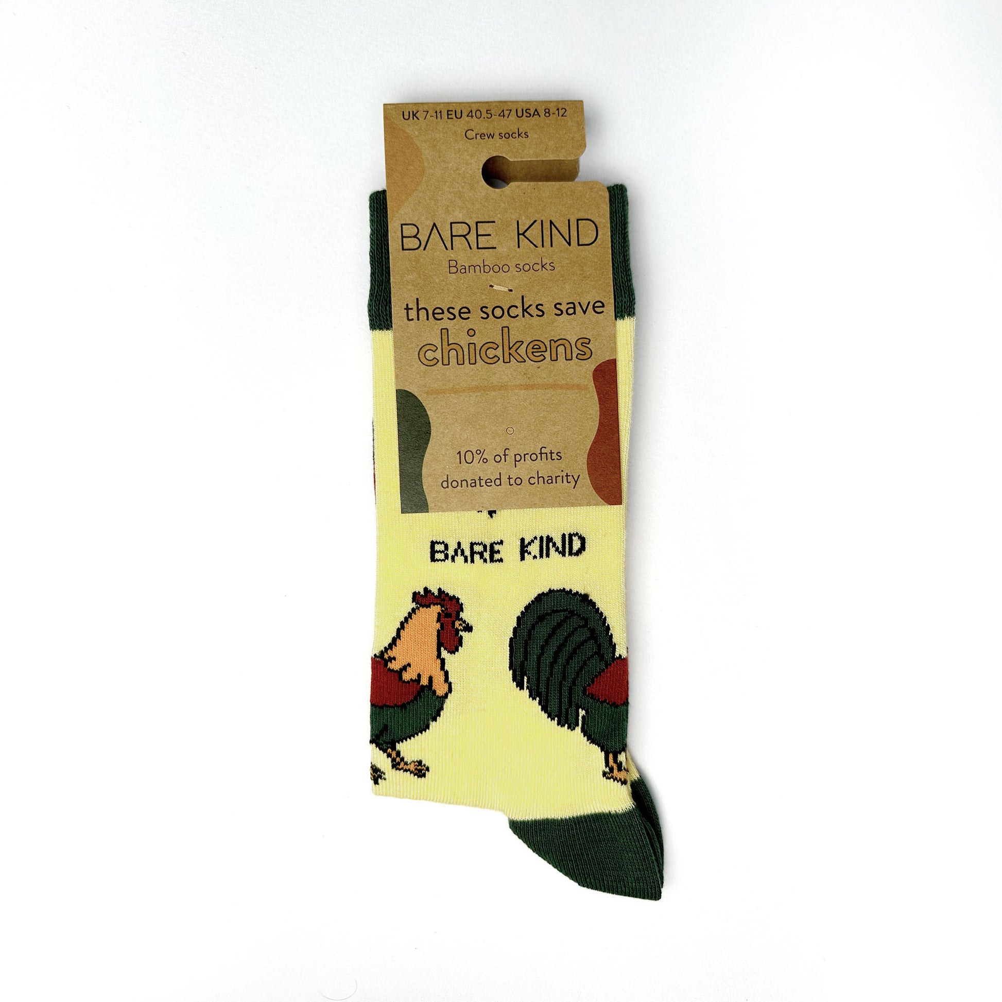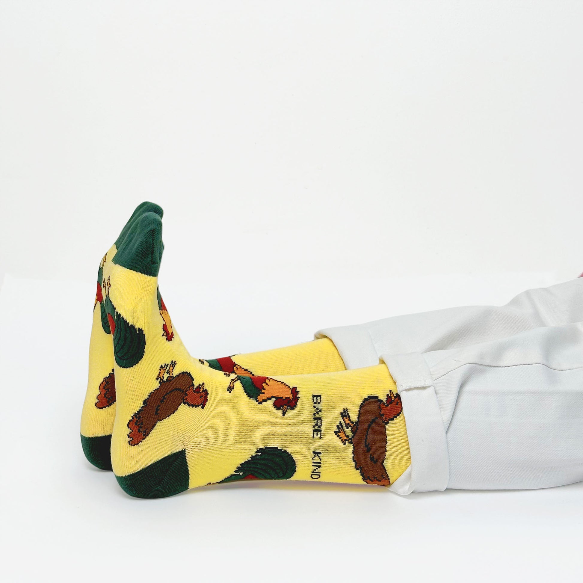 You'll love these chicken socks, from Bare Kind, featuring a charming hen and cockerel design on a cheerful yellow background.