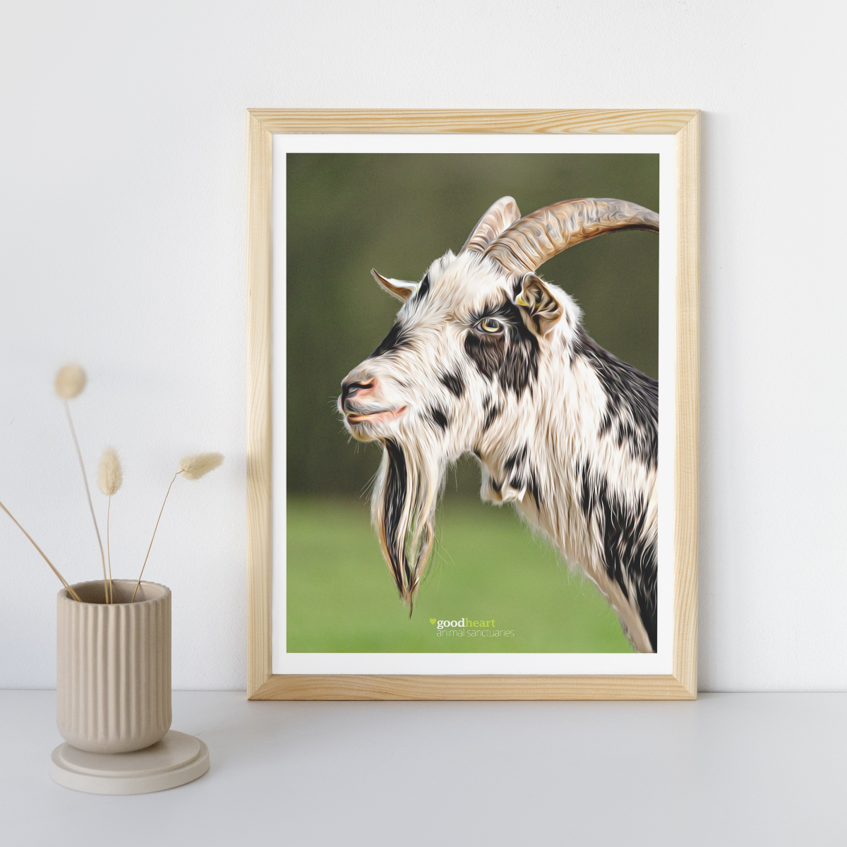Show your love for our rescued goat George with this adorable print, the perfect way to brighten up your home.