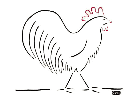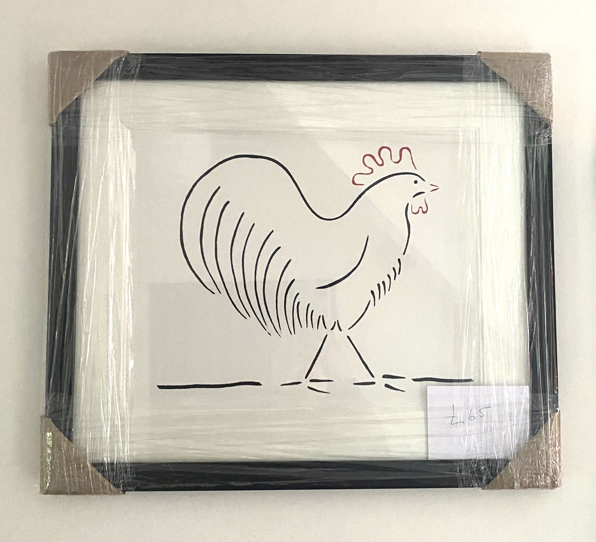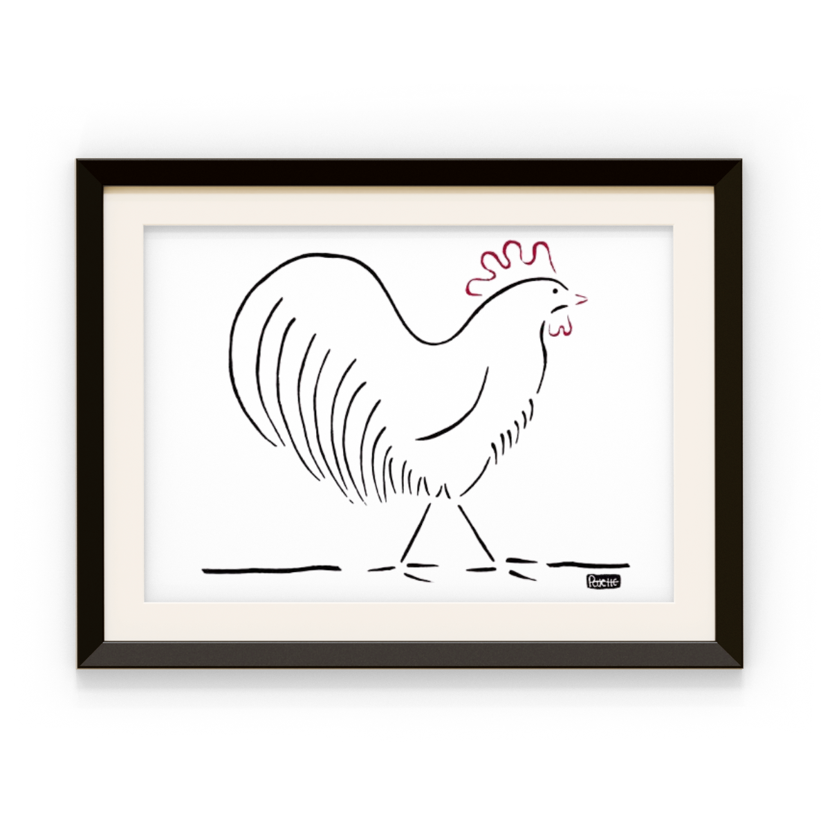 This framed print features a simple yet fun design of a strutting cockerel, bringing a lively touch to any space.