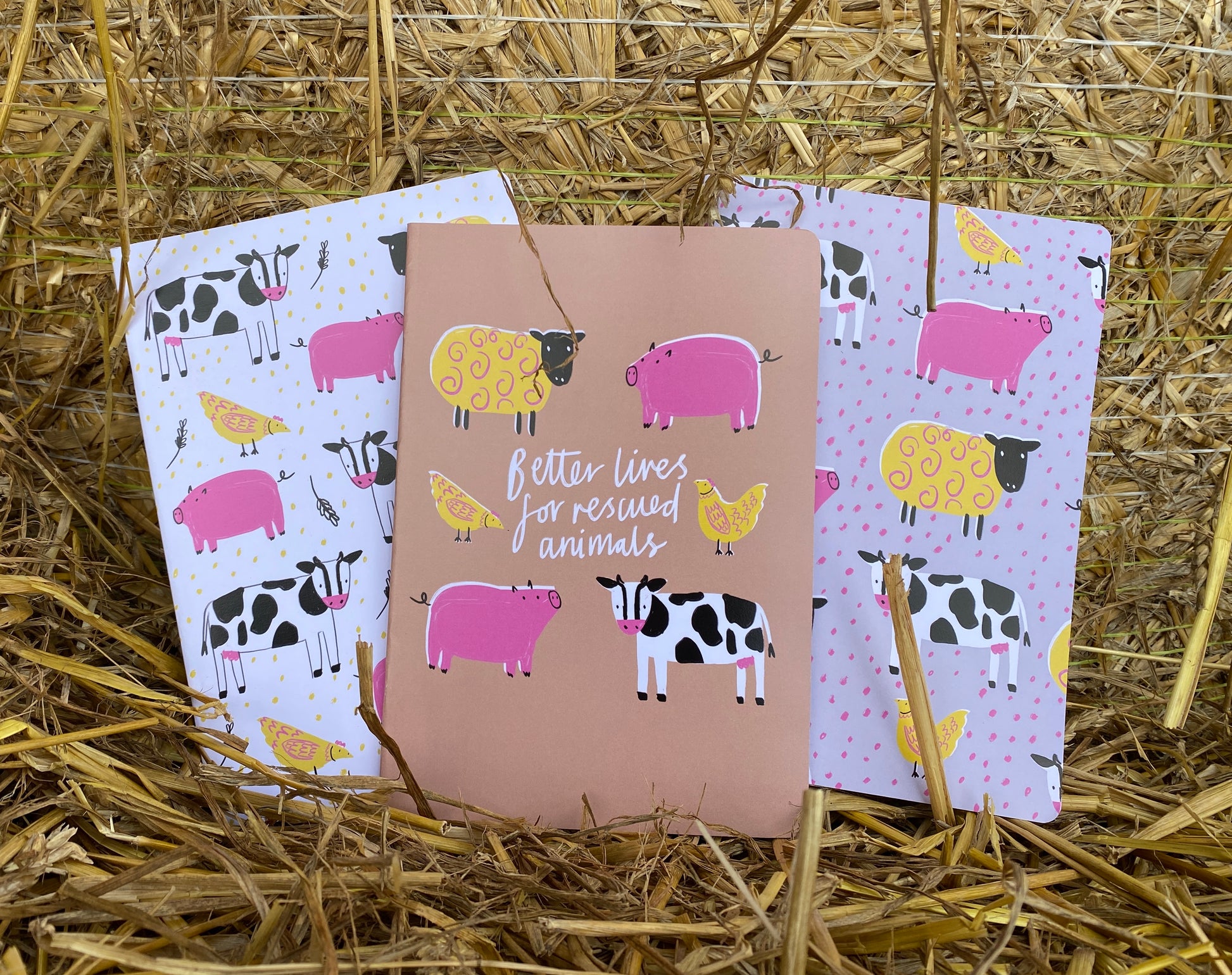 Brighten up your desk with this colourful set of three A5 lined notebooks, each featuring cheerful farm animal designs inspired by our rescued residents. Perfect for jotting down notes, lists, or creative ideas, they make a lovely gift for animal lovers of all ages.