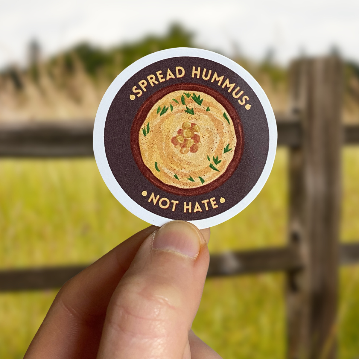 - 'Spread hummus not hate' sticker. Size 5cm approx.