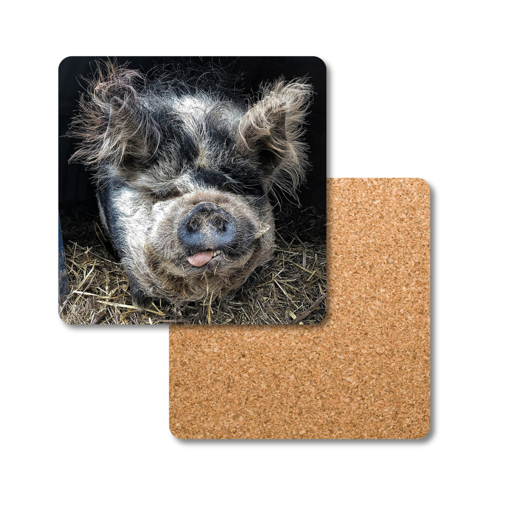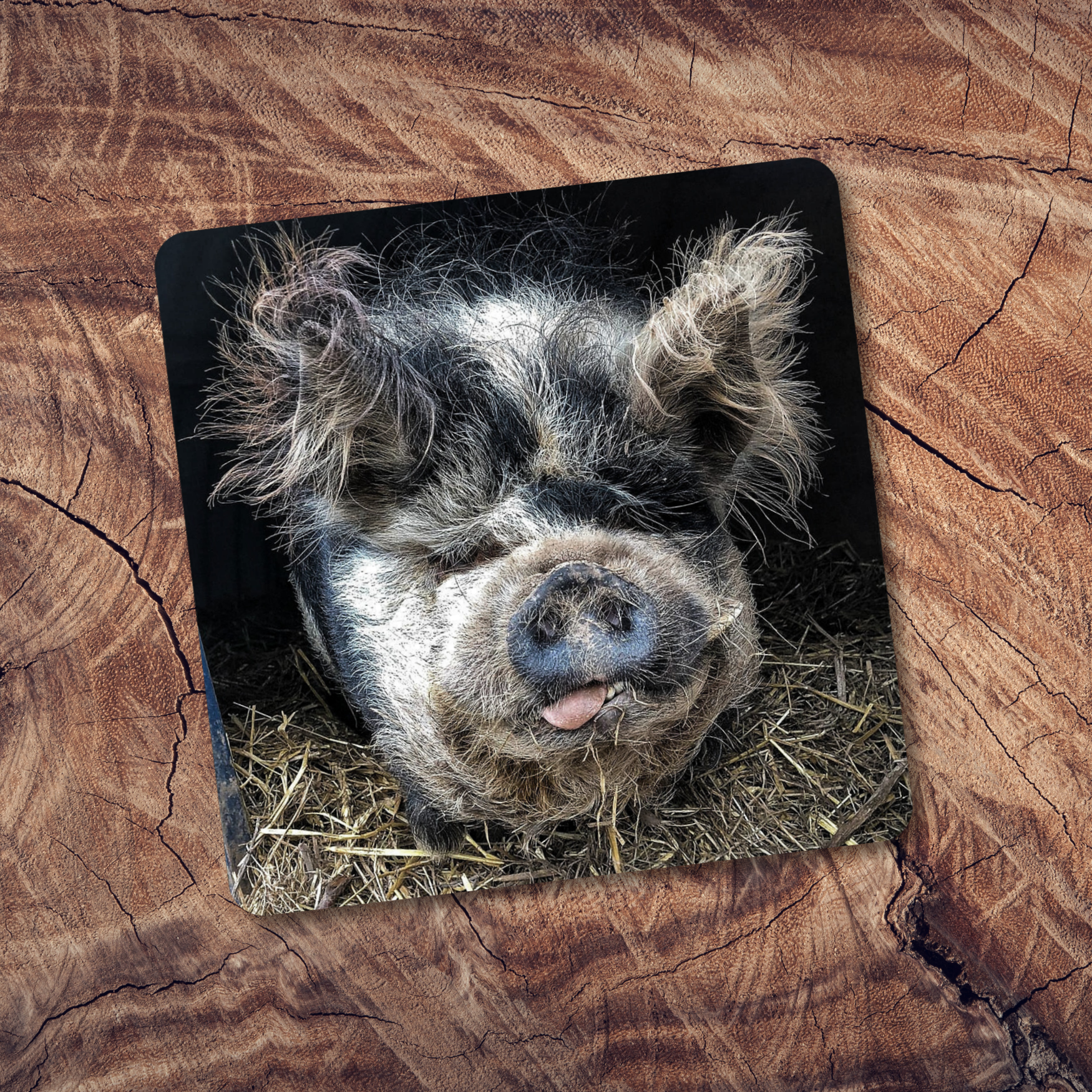 Add a touch of charm to your home with our Kermit the pig coaster, featuring a stunning photo of our cheeky rescued pig, Kermit.