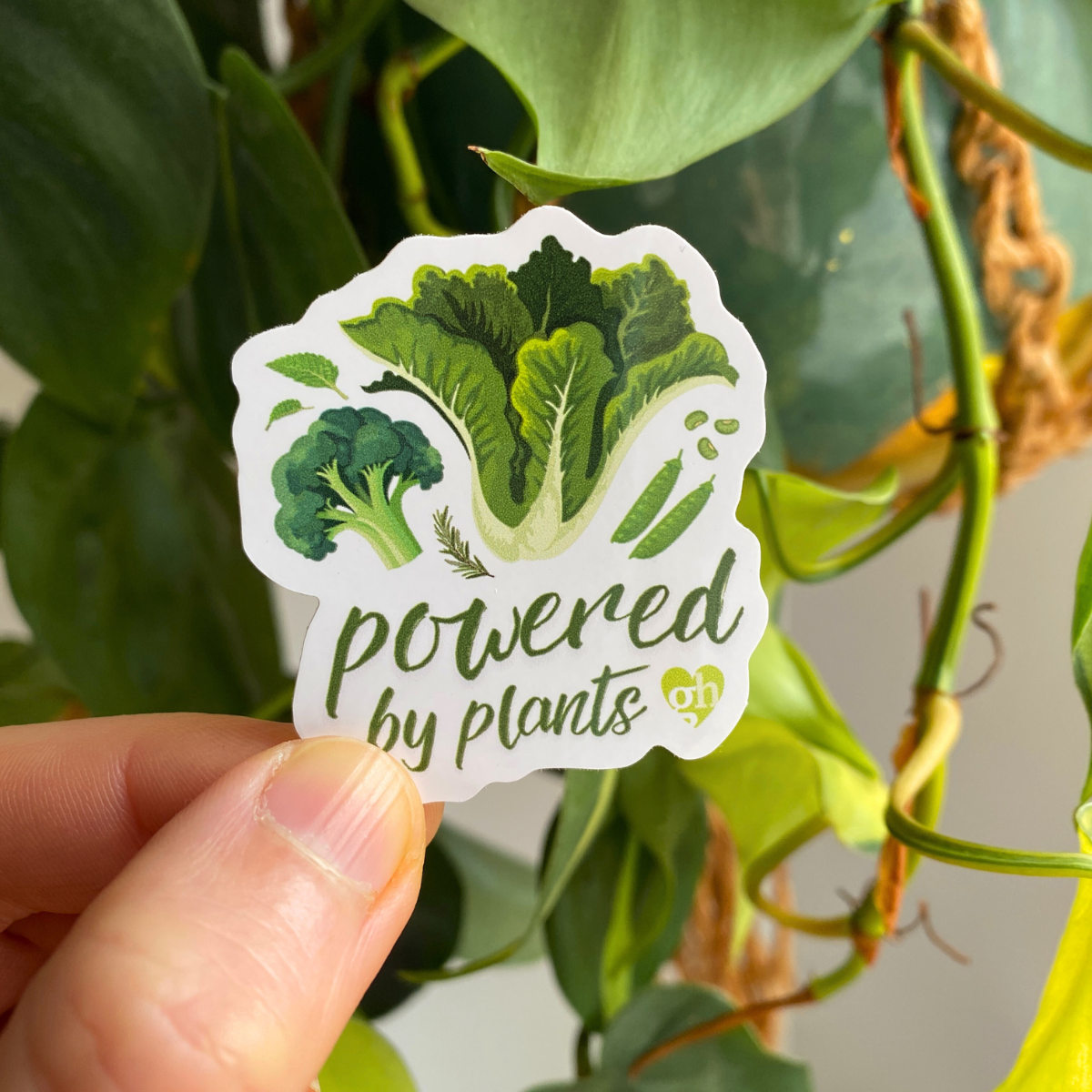 This vibrant die cut sticker is sure to brighten up any surface, whether that's a cool box, phone case or laptop. It features a fun design with "Powered by plants" message.