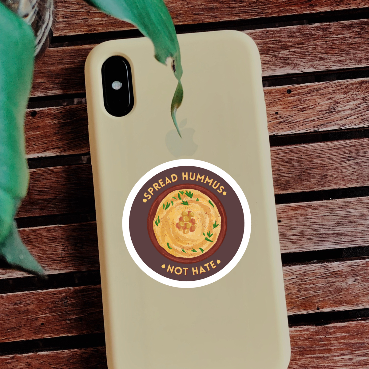 Spread kindness, compassion, and chickpea-based dips! These fun circular stickers are sure to make anyone smile and will brighten up every surface they adorn - from phone cases, laptops, lunch boxes and more!
