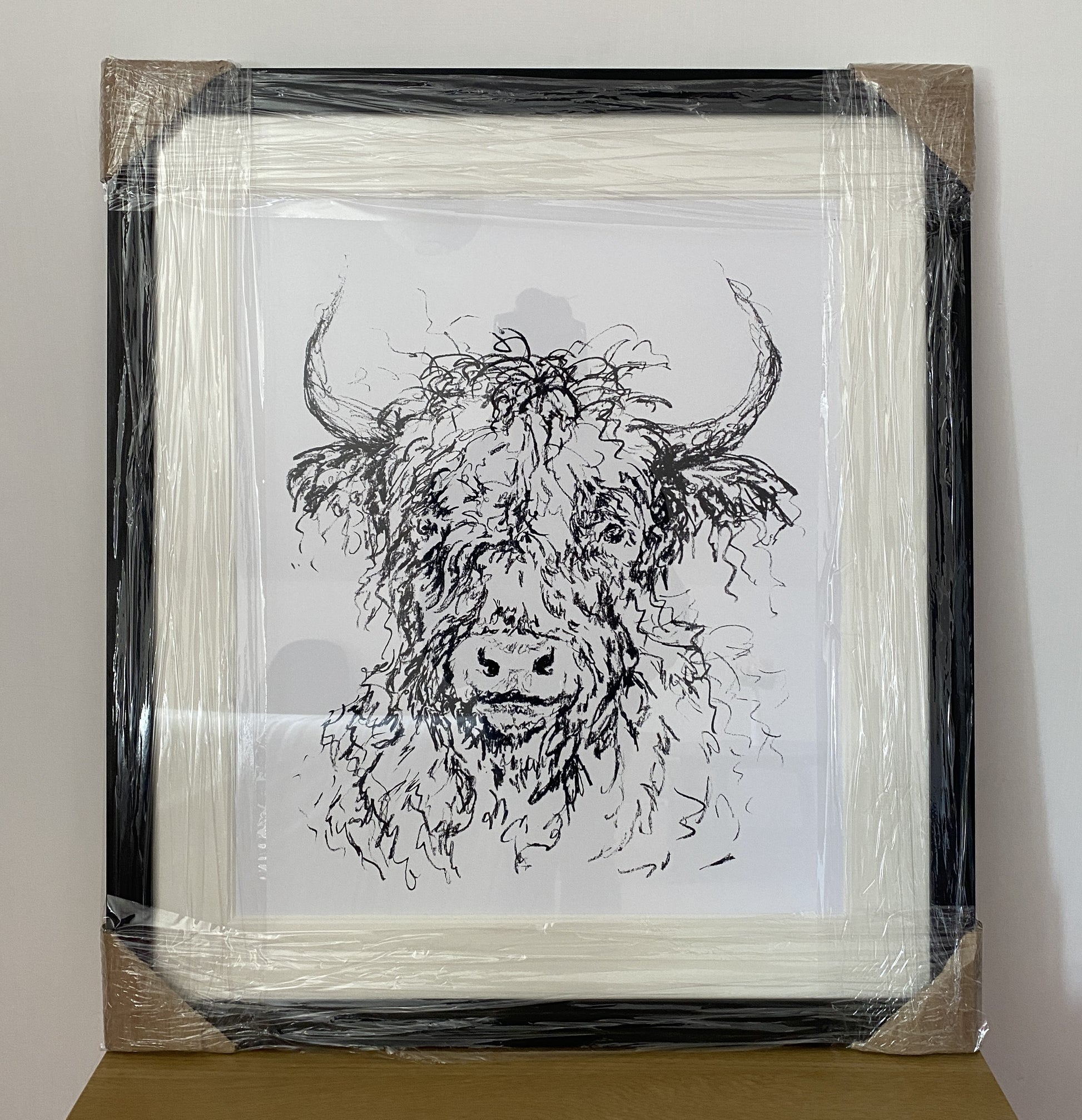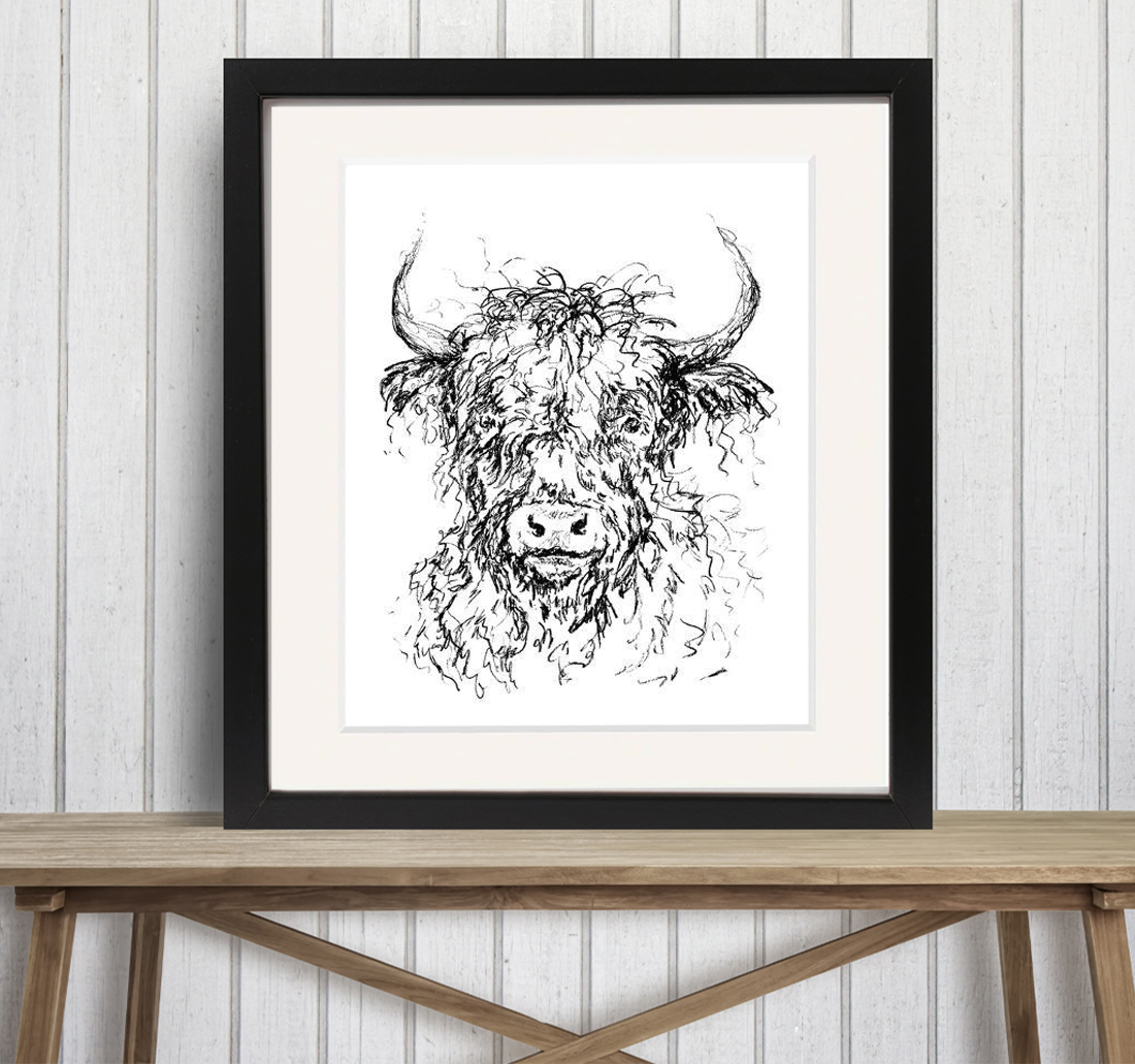 Discover the whimsical charm of Janie Howe's delightful squiggly line artwork with this Giclée print of a sheep, elegantly presented in a sleek black frame with a mount. This piece adds a touch of playful sophistication to any space.